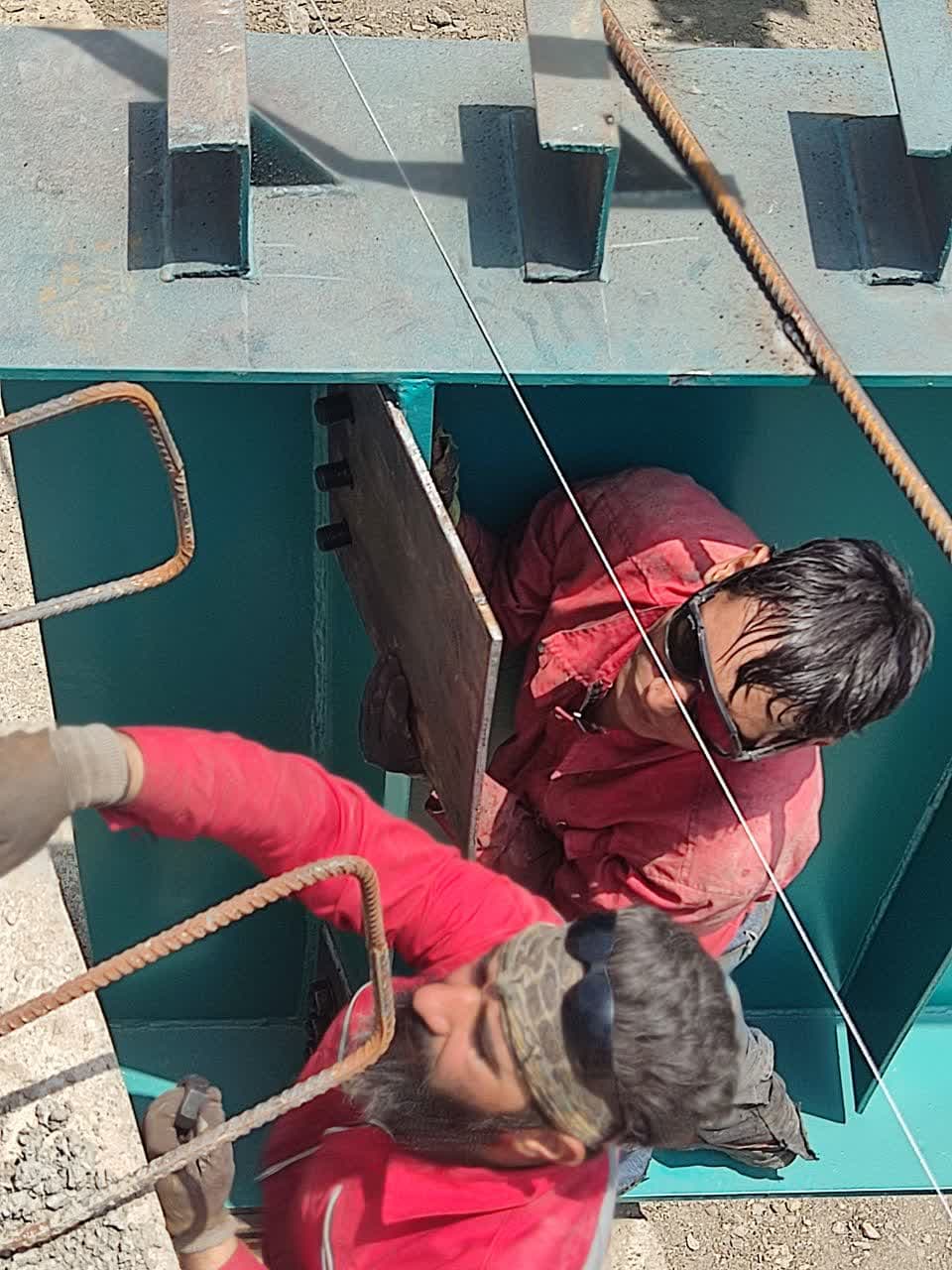 شروع جوشکاری بادبندها : پس از تکمیل استقرار تیر ورق ها و تثبیت اولیه سازه ، عملیات جوشکاری بدبندهای فولادی آغازگردید. این بادبند ها نقش کلیدی در پایداری جانبی پل ، به ویژه در برابرنیروهای افقی زلزله دارند.